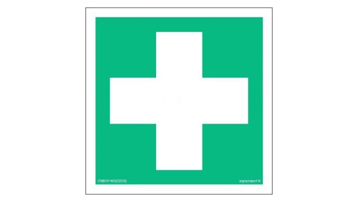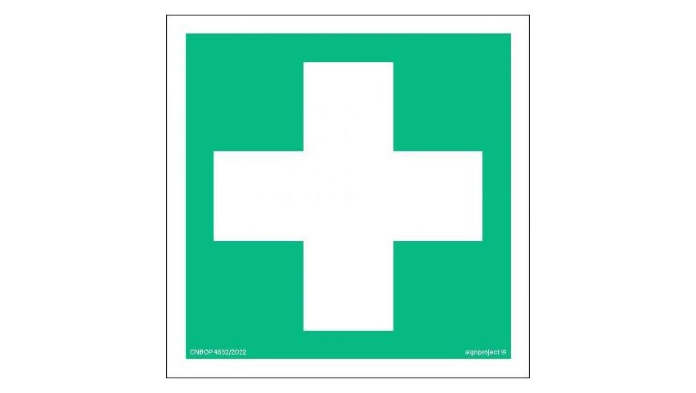 ZNAK - AE003 Pierwsza pomoc medyczna 10 x 10 cm PS - Płyta 1mm foto.