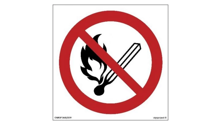 ZNAK - BA002 Zakaz używania otwartego ognia - palenie tytoniu zabronione 35 x 35 cm KS - Folia podłogowa foto.