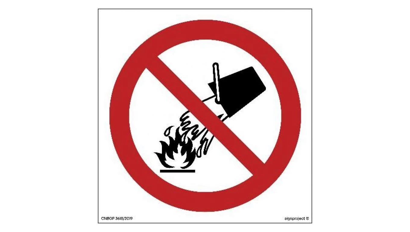 ZNAK - BA003 Zakaz gaszenia wodą 10 x 10 cm PS - Płyta 1mm foto.
