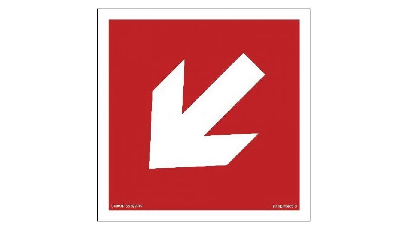 ZNAK - BA012 Kierunek do miejsca rozmieszczenia sprzętu pożarniczego lub urządzenia ostrzegającego 10 x 10 cm FN - Folia samoprz