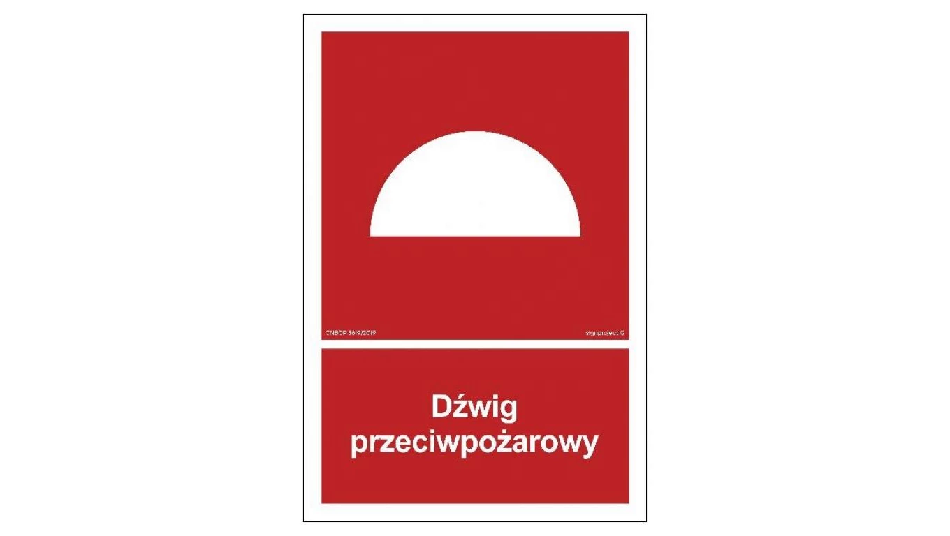 ZNAK - BB009 Dźwig przeciwpożarowy 50 x 74 cm PN - Płyta 1mm