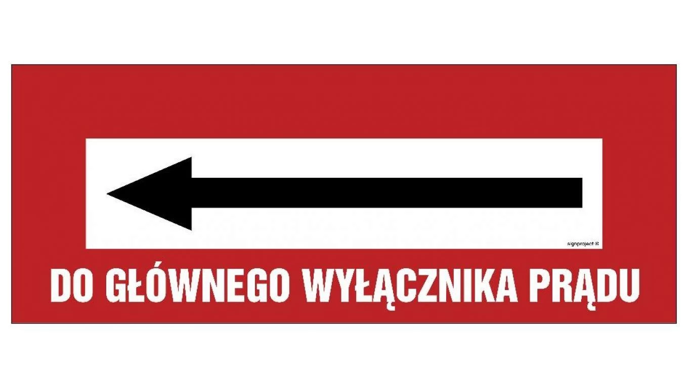 ZNAK - BC130 Do głównego wyłącznika prądu 54 x 21 cm PS - Płyta 1mm foto.