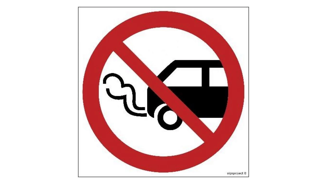 ZNAK - GB006 Nie zostawiać włączonych silników spalinowych 35 x 35 cm FS - Folia samoprzylepna foto.
