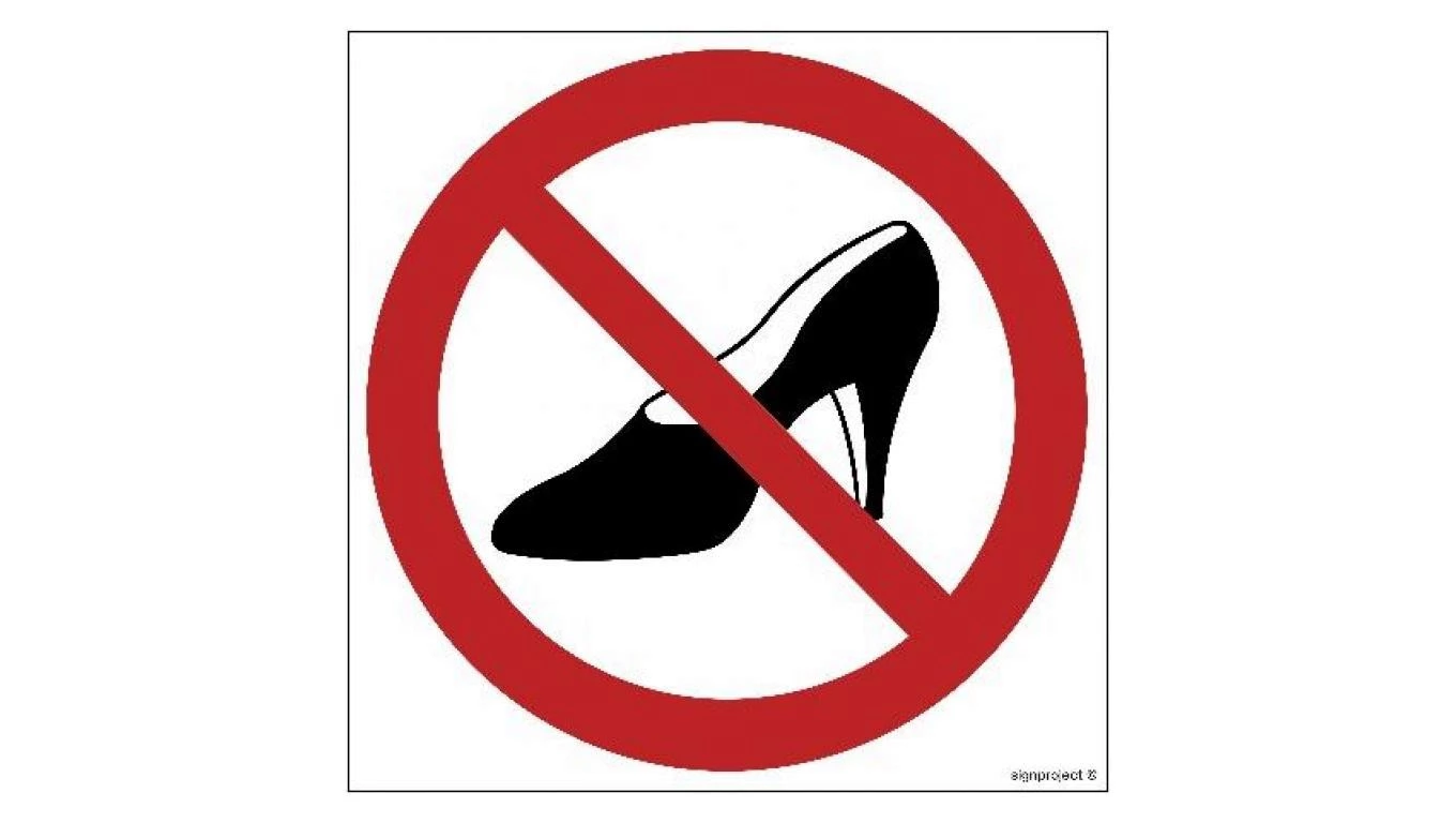 ZNAK - GB008 Zakaz używania obuwia na wysokim obcasie 35 x 35 cm KN - Folia podłogowa