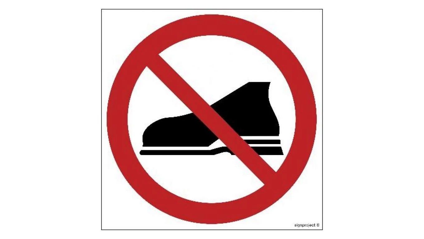ZNAK - GB009 Zakaz wejścia w obuwiu zewnętrznym 25 x 25 cm FS - Folia samoprzylepna foto.