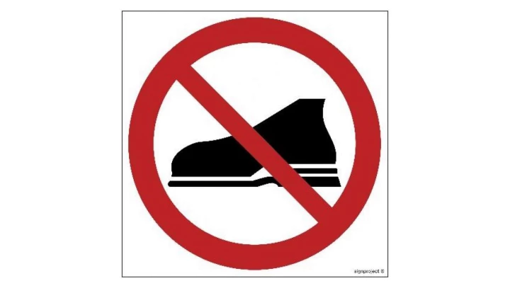 ZNAK - GB009 Zakaz wejścia w obuwiu zewnętrznym 35 x 35 cm FN - Folia samoprzylepna