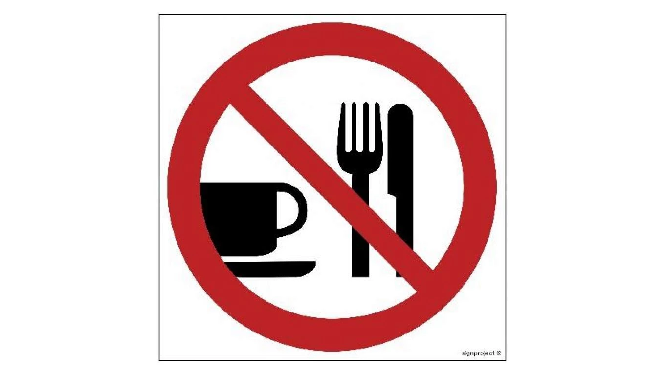 ZNAK - GB010 Zakaz spożywania posiłków 20 x 20 cm KN - Folia podłogowa