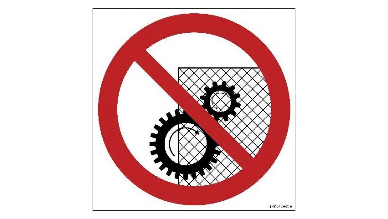 ZNAK - GB025 Zakaz zdejmowania osłon podczas pracy urządzenia 50 x 50 cm TS - Płyta TD foto.