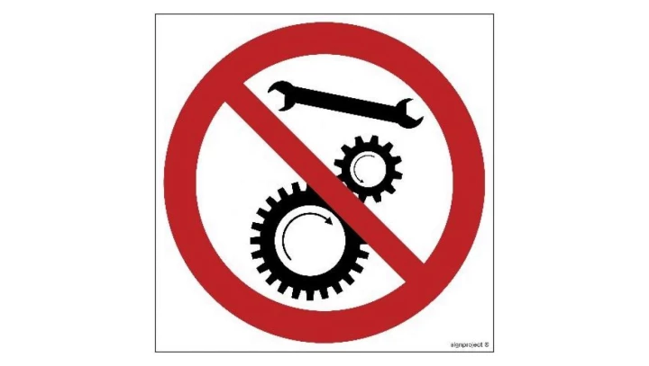 ZNAK - GB029 Zakaz naprawiania urządzenia w ruchu 35 x 35 cm PN - Płyta 1mm
