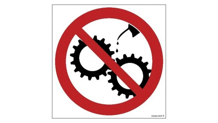 ZNAK - GB030 Zakaz smarowania urządzeń w ruchu 20 x 20 cm PS - Płyta 1mm foto.