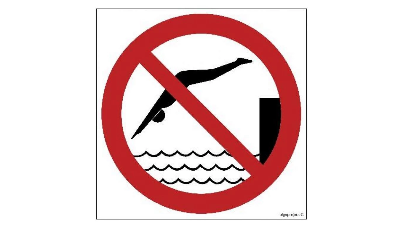ZNAK - GB037 Zakaz skakania do wody 50 x 50 cm PS - Płyta 1mm foto.