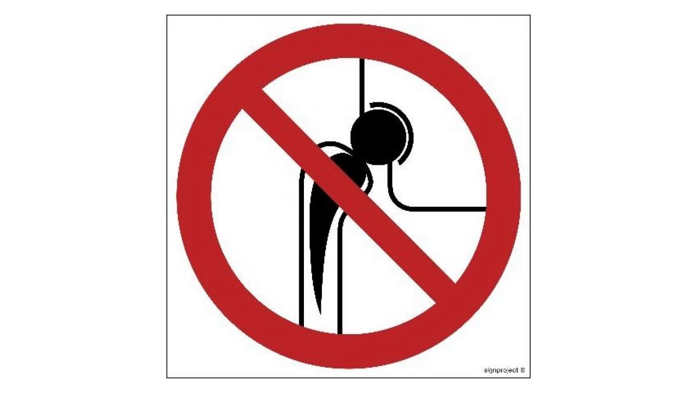 ZNAK - GB042 Zakaz wstępu z metalowymi implantami 10 x 10 cm KN - Folia podłogowa