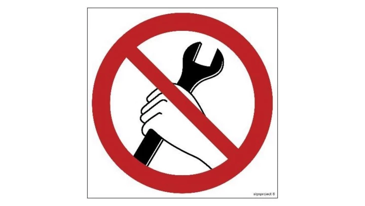 ZNAK - GB045 Zakaz używania narzędzi 15 x 15 cm PS - Płyta 1mm foto.