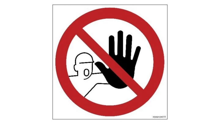 ZNAK - GB053 Nieupoważnionym wstęp wzbroniony - arkusz 12 naklejek 5 x 5 cm FN - Folia samoprzylepna