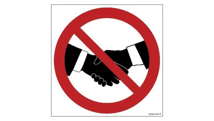ZNAK - GB060 Zakaz podawania dłoni 10 x 10 cm PN - Płyta 1mm