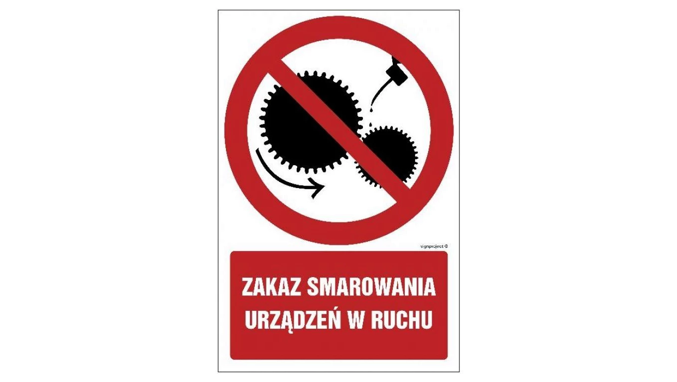 ZNAK - GC018 Zakaz smarowania urządzeń w ruchu 25 x 37,5 cm FN - Folia samoprzylepna