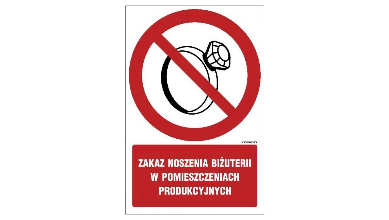 ZNAK - GC038 Zakaz noszenia biżuterii w pomieszczeniach produkcyjnych 25 x 37,5 cm PN - Płyta 1mm