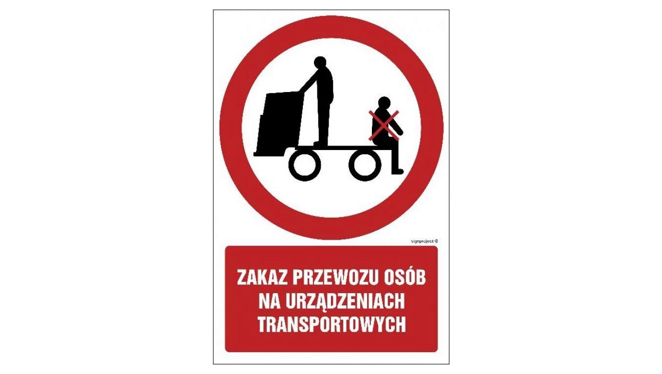 ZNAK - GC058 Zakaz przewozu osób na urządzeniach transportowych 15 x 22,5 cm PN - Płyta 1mm