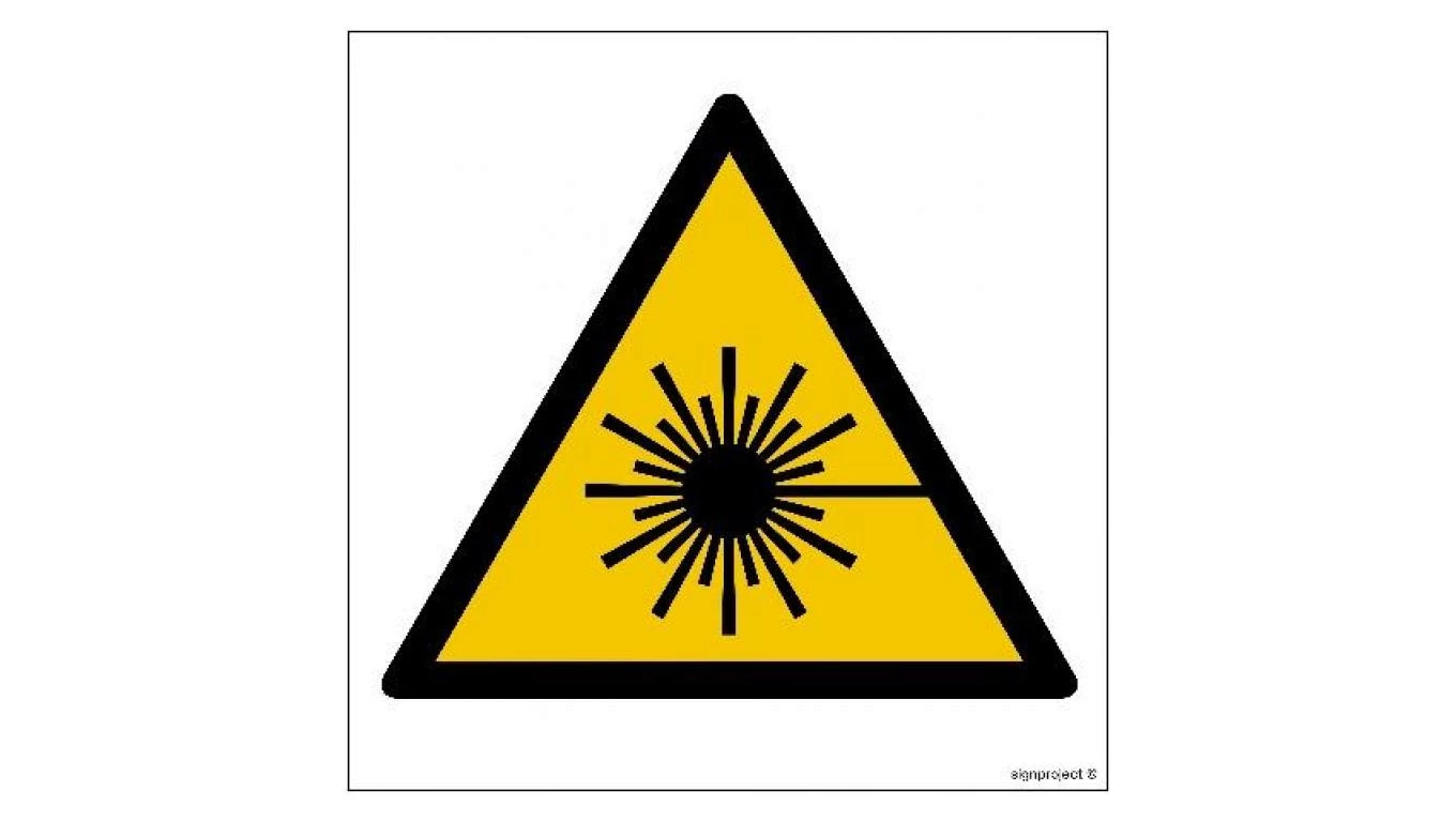 ZNAK - GD004 Ostrzeżenie przed wiązką laserową - arkusz 12 naklejek 5 x 5 cm FS - Folia samoprzylepna foto.
