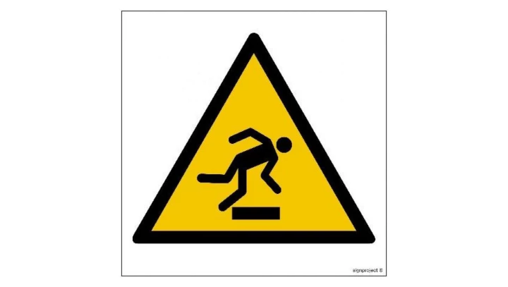 ZNAK - GD007 Ostrzeżenie przed niebezpieczeństwem potknięcia się 20 x 20 cm FN - Folia samoprzylepna
