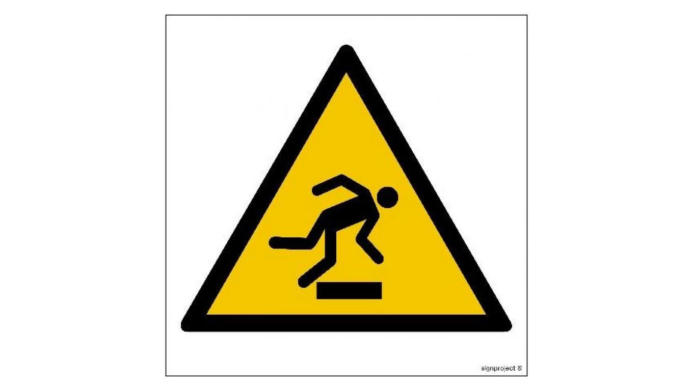 ZNAK - GD007 Ostrzeżenie przed niebezpieczeństwem potknięcia się 50 x 50 cm FS - Folia samoprzylepna foto.
