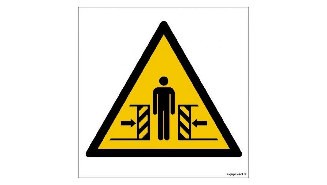 ZNAK - GD019 Ostrzeżenie przed zgnieceniem bocznym 10 x 10 cm KN - Folia podłogowa