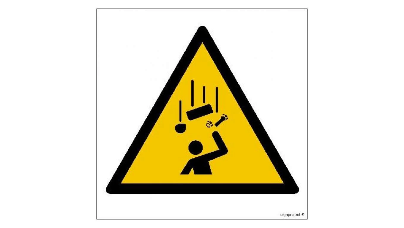 ZNAK - GD035 Ostrzeżenie przed spadającymi elementami 15 x 15 cm FS - Folia samoprzylepna foto.