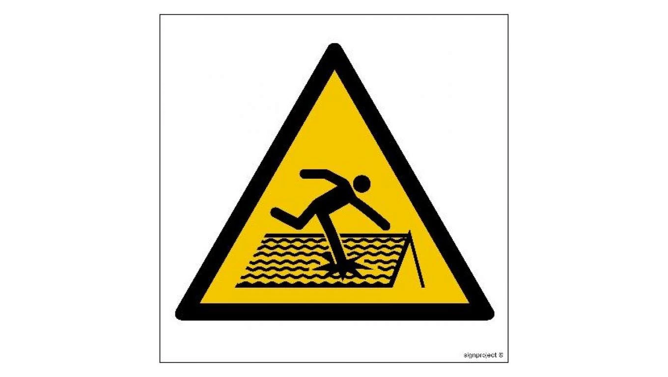 ZNAK - GD036 Ostrzeżenie przed kruchym dachem 35 x 35 cm TS - Płyta TD foto.