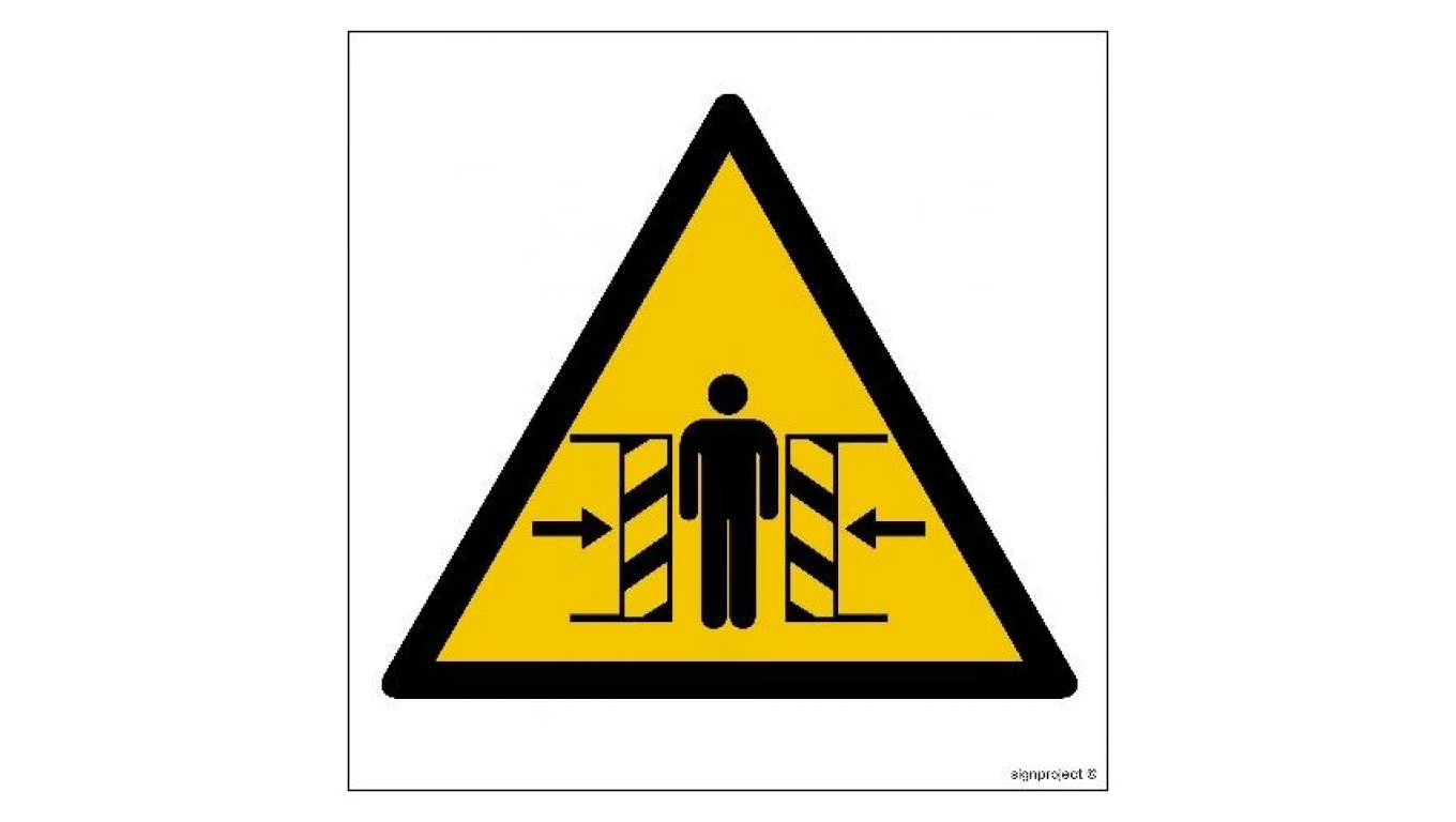ZNAK - GE005 Ostrzeżenie przed zgnieceniem bocznym 20 x 20 cm FS - Folia samoprzylepna foto.