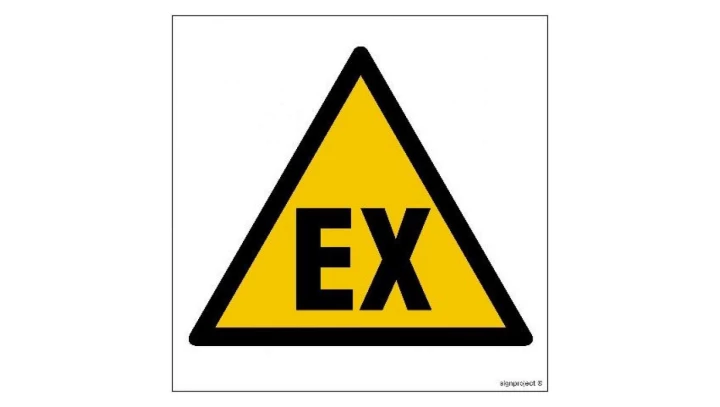 ZNAK - GE010 Ostrzeżenie przed atmosferą wybuchową 35 x 35 cm FN - Folia samoprzylepna
