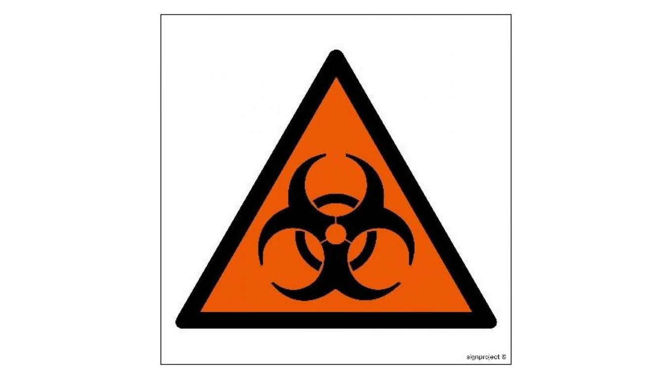 ZNAK - GE011 Ostrzeżenie przed zagrożeniem biologicznym 35 x 35 cm KS - Folia podłogowa foto.