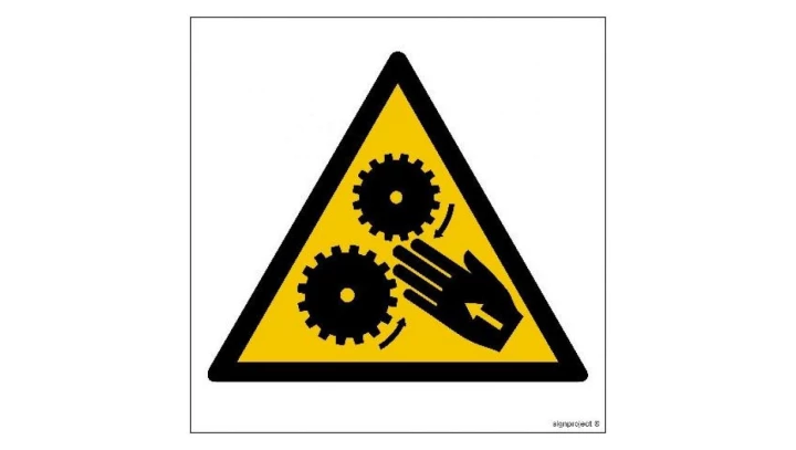 ZNAK - GE013 Uwaga wirujące elementy 25 x 25 cm PN - Płyta 1mm