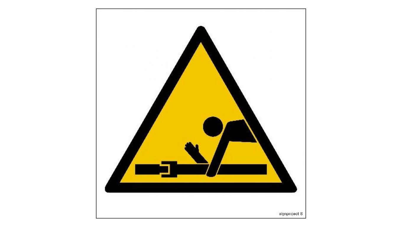 ZNAK - GE017 Uwaga ruchome elementy 50 x 50 cm FN - Folia samoprzylepna