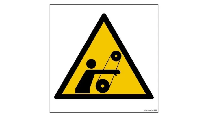 ZNAK - GE018 Uwaga ruchome elementy 10 x 10 cm TS - Płyta TD foto.