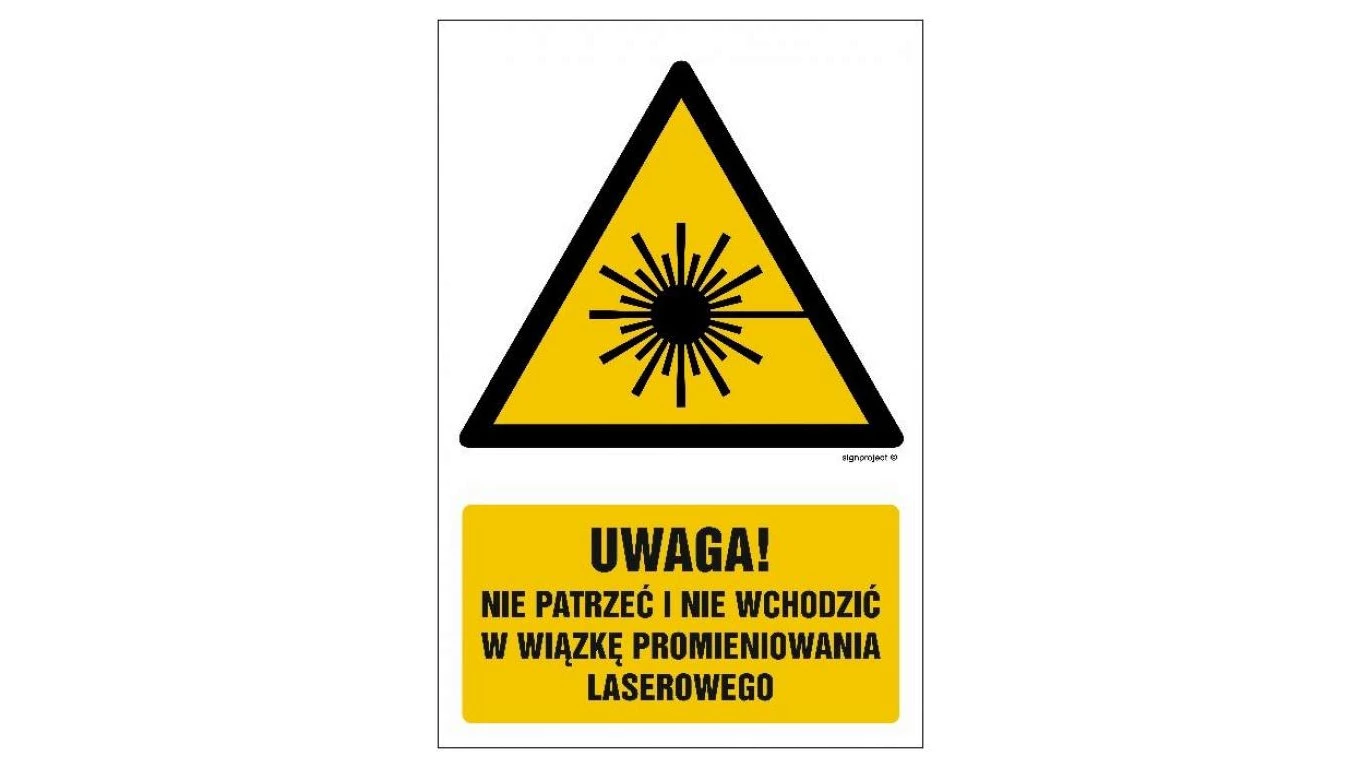 ZNAK - GF014 Uwaga - nie patrzeć i nie wchodzić w wiązkę promieniowania laserowe 70 x 105 cm PN - Płyta 1mm