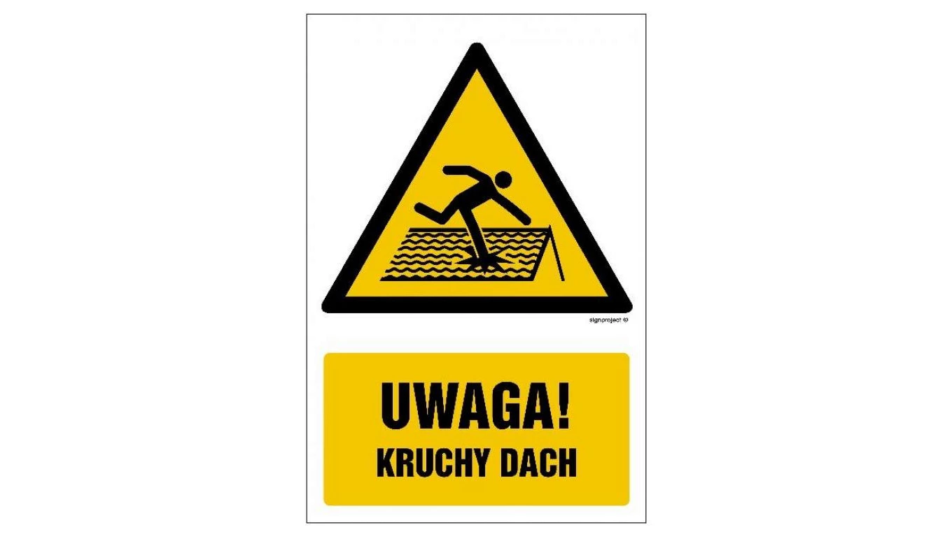 ZNAK - GF016 Uwaga! Kruchy dach 30 x 45 cm FN - Folia samoprzylepna