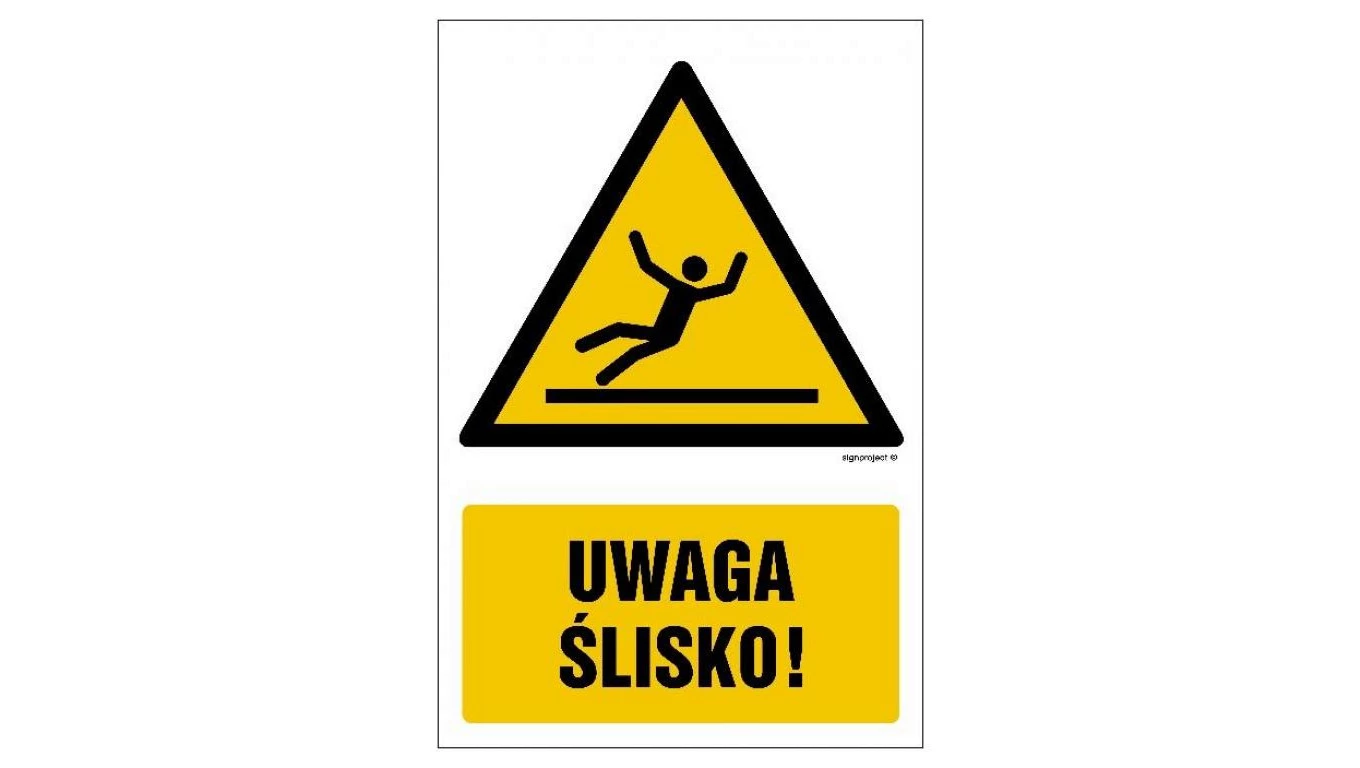 ZNAK - GF020 Uwaga - ślisko 10 x 15 cm FN - Folia samoprzylepna