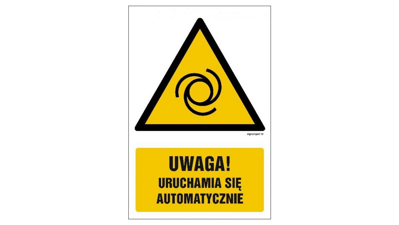 ZNAK - GF034 Uwaga! Uruchamia się automatycznie 15 x 22,5 cm FN - Folia samoprzylepna
