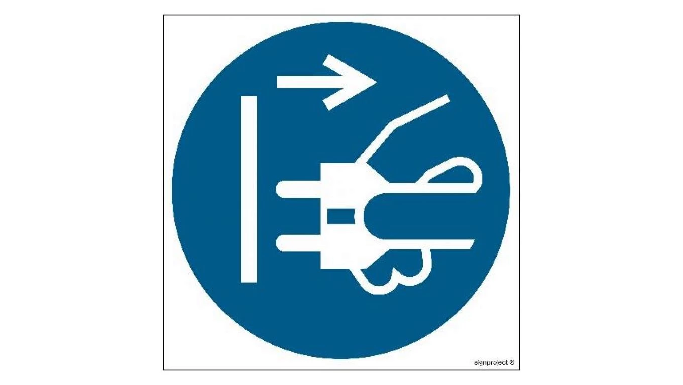 ZNAK - GJ006 Nakaz odłączenia urządzenia od sieci elektrycznej 25 x 25 cm PS - Płyta 1mm foto.