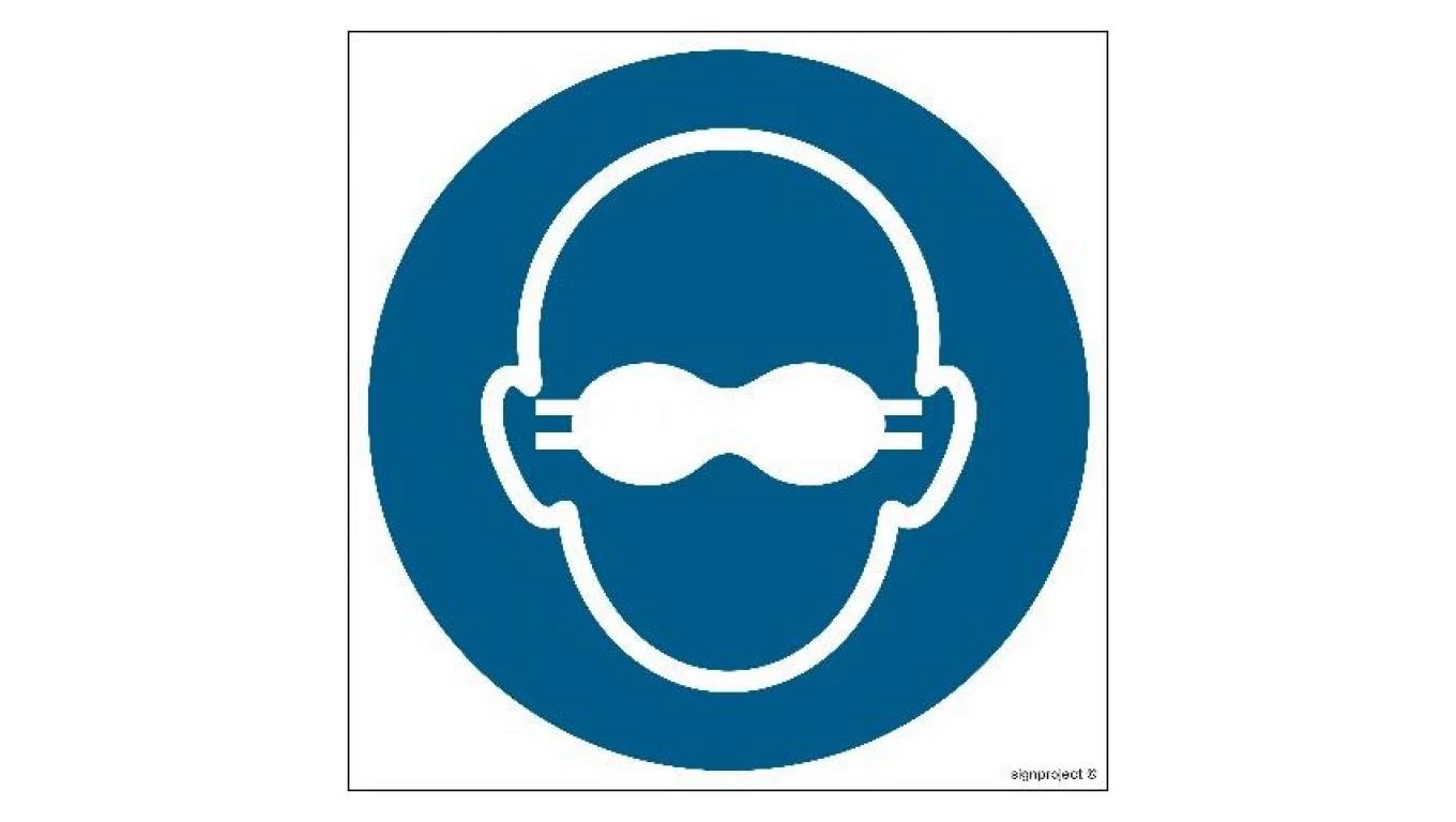 ZNAK - GJ007 Nakaz stosowania przyciemnianych gogli ochronnych 20 x 20 cm FN - Folia samoprzylepna