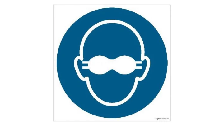 ZNAK - GJ007 Nakaz stosowania przyciemnianych gogli ochronnych 35 x 35 cm FN - Folia samoprzylepna