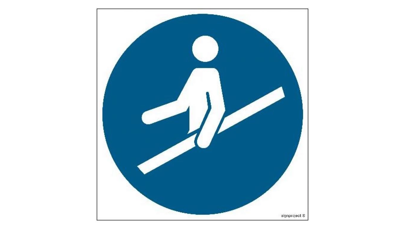 ZNAK - GJ012 Nakaz używania poręczy 10 x 10 cm PS - Płyta 1mm foto.