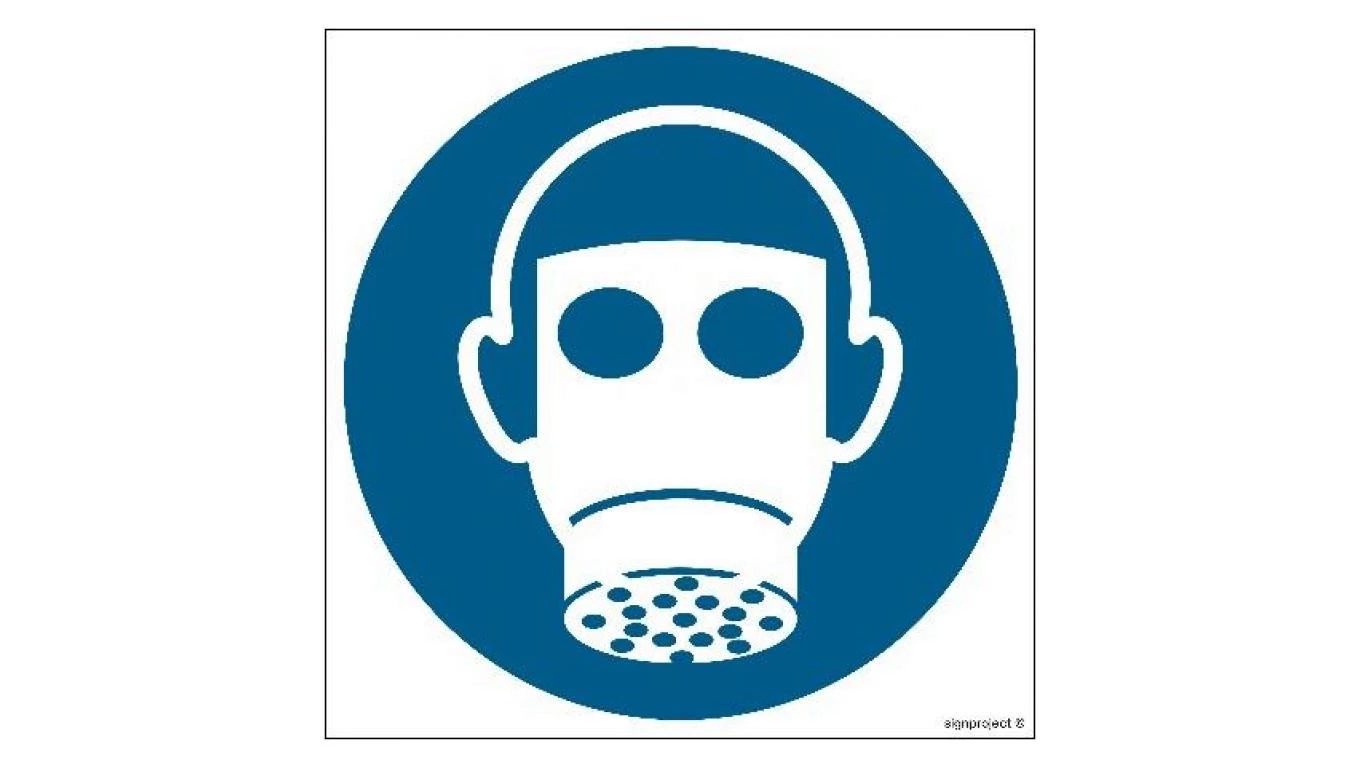 ZNAK - GJ017 Nakaz stosowania ochrony dróg oddechowych 10 x 10 cm PN - Płyta 1mm