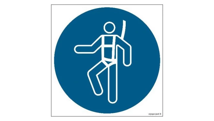 ZNAK - GJ018 Nakaz stosowania szelek bezpieczeństwa 25 x 25 cm FS - Folia samoprzylepna foto.