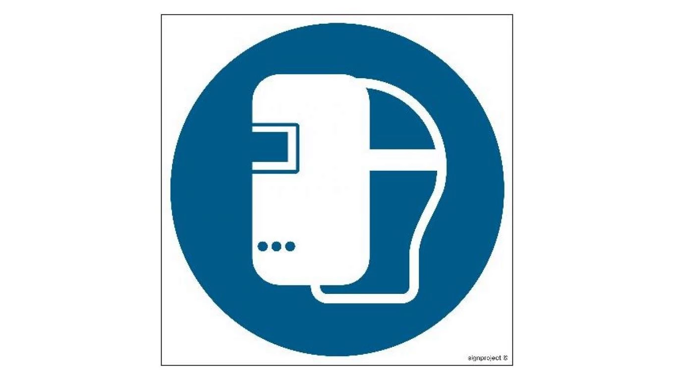 ZNAK - GJ019 Nakaz stosowania maski spawalniczej 10 x 10 cm FS - Folia samoprzylepna foto.