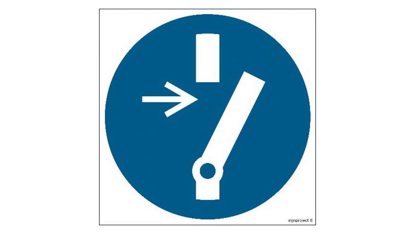 ZNAK - GJ021 Odłącz przed przystąpieniem do konserwacji lub naprawy 15 x 15 cm FN - Folia samoprzylepna