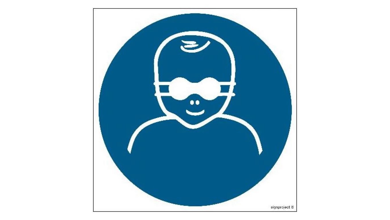 ZNAK - GJ025 Nakaz ochrony oczu dzieci nieprzejrzystymi okularami ochronnymi 10 x 10 cm KN - Folia podłogowa
