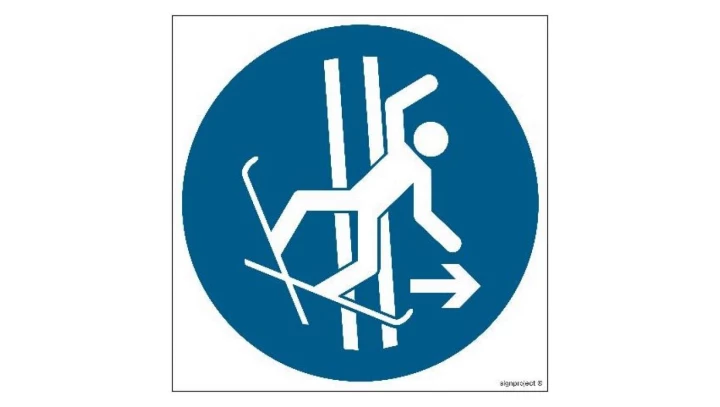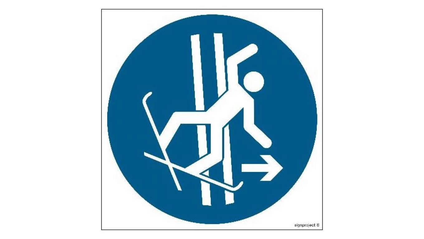 ZNAK - GJ035 Nakaz natychmiastowego opuszczenia trasy orczyka w razie upadku 50 x 50 cm FS - Folia samoprzylepna foto.
