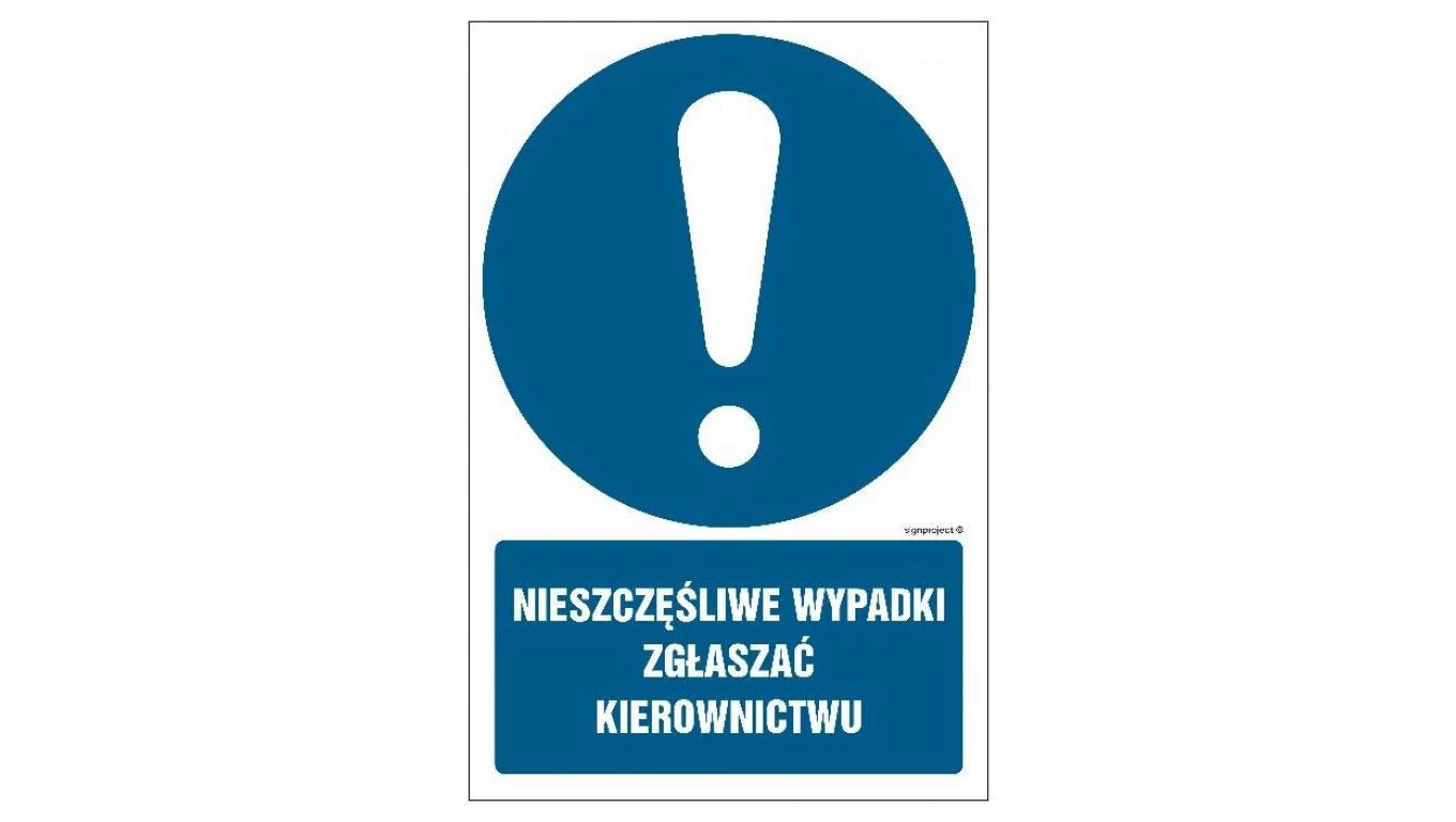ZNAK - GL002 Nieszczęśliwe wypadki zgłaszać kierownictwu 50 x 75 cm PS - Płyta 1mm foto.