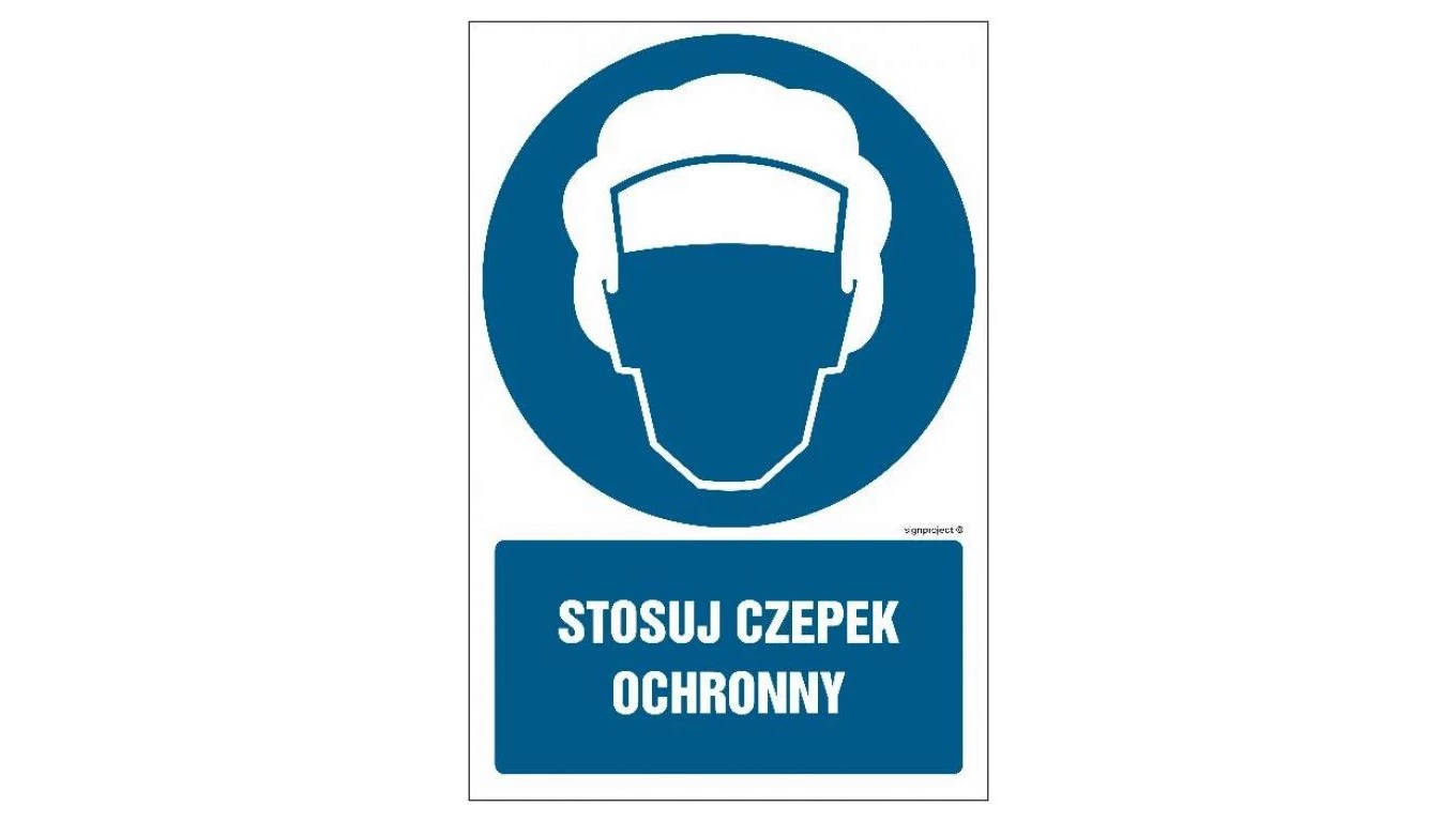 ZNAK - GL025 Stosuj czepek ochronny 10 x 15 cm TS - Płyta TD foto.